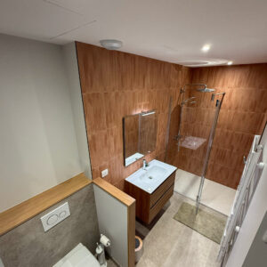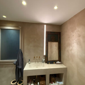 • Réalisation complète de l’éclairage des salles de bains : spots encastrés, miroirs éclairés et mise en valeur des volumes
